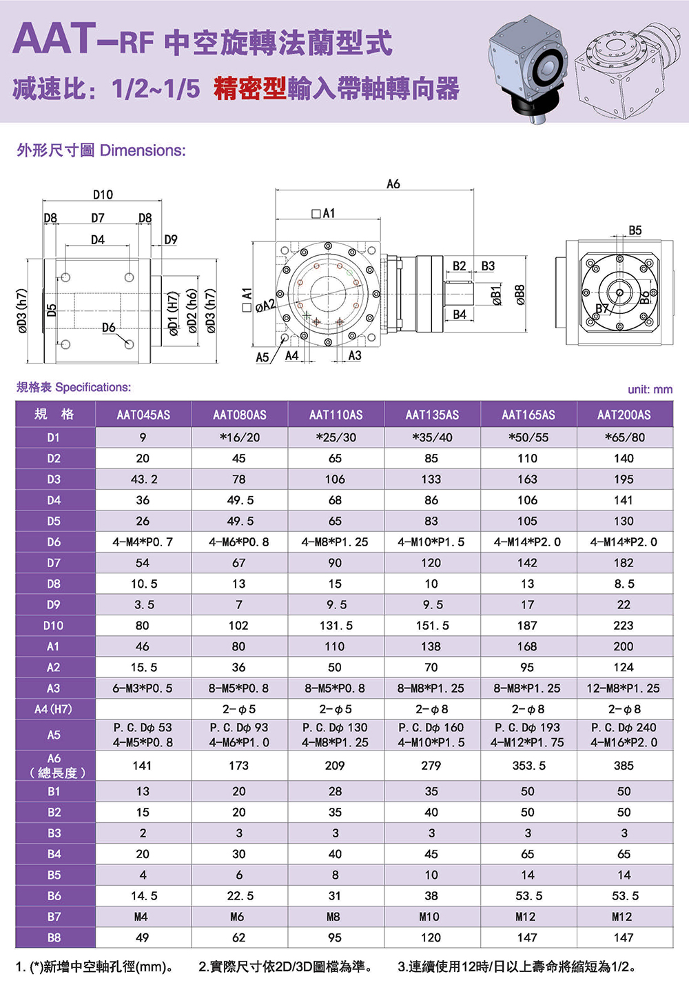 AAT-RF中空旋轉(zhuǎn)法蘭型式 精密型輸入帶軸轉(zhuǎn)向器