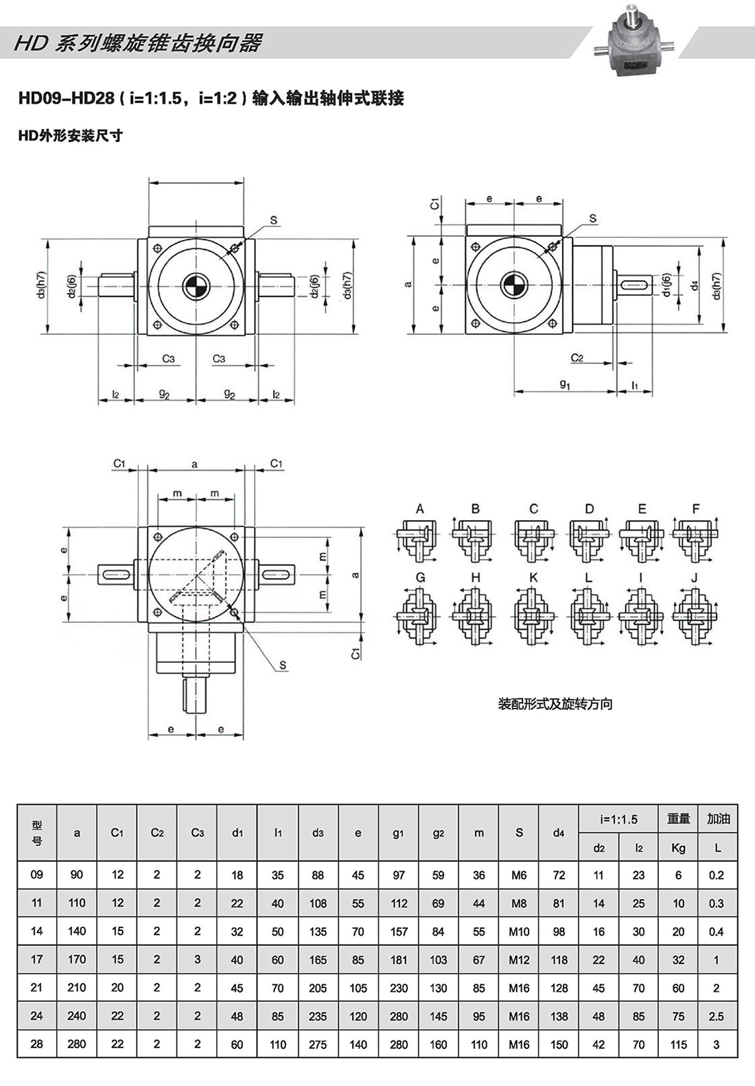 高強(qiáng)度:90度型式,高精度螺旋傘齒輪,采用鎳鉻合金鋼SCM415 HRC60度。