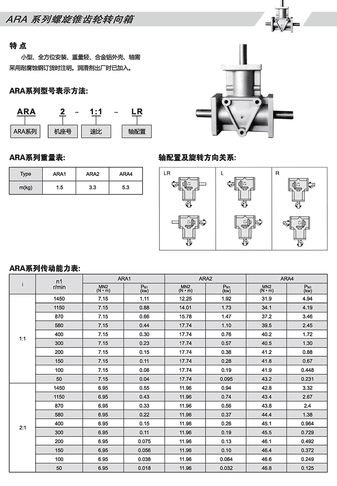 ARA系列螺旋錐齒輪轉向箱