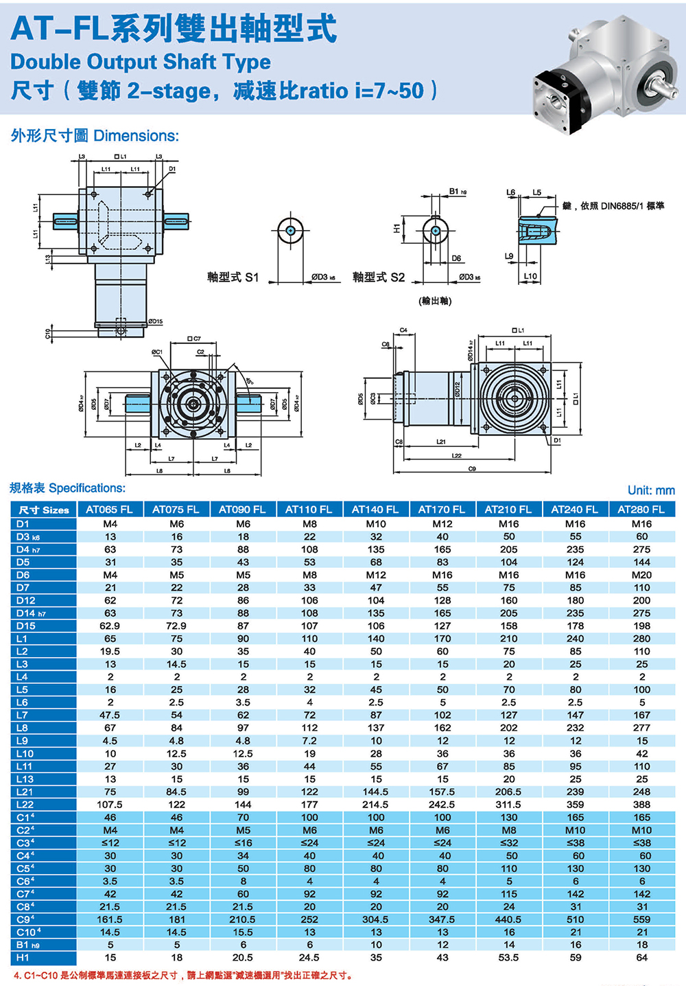 多樣化:輸出軸種類多樣化,有單出力軸型、雙出力軸型、中空軸型、中空法蘭型、中空軸錐形緊迫性、螺桿直線型、螺牙直線型。