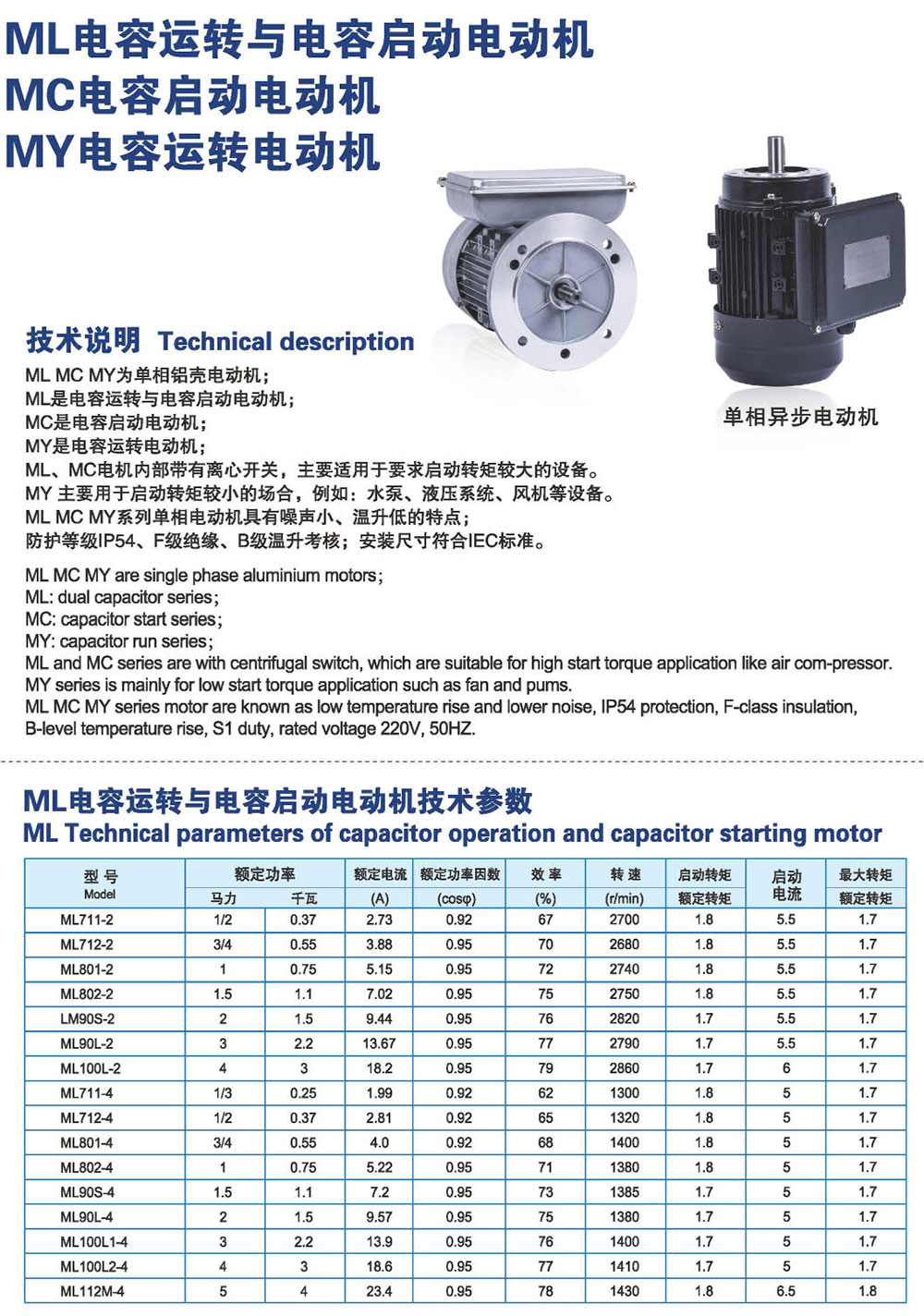 ML/MC/MY電容啟動(dòng)與運(yùn)轉(zhuǎn)電動(dòng)機(jī)