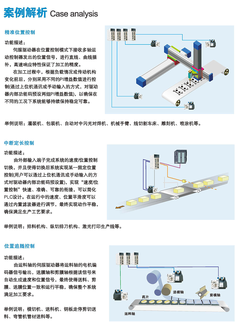 伺服驅(qū)動器在位置控制模式下接收多軸運(yùn)動控制器發(fā)出的位置信號,進(jìn)行直線、曲線插補(bǔ),高速響應(yīng)特性保證了加工的精度。