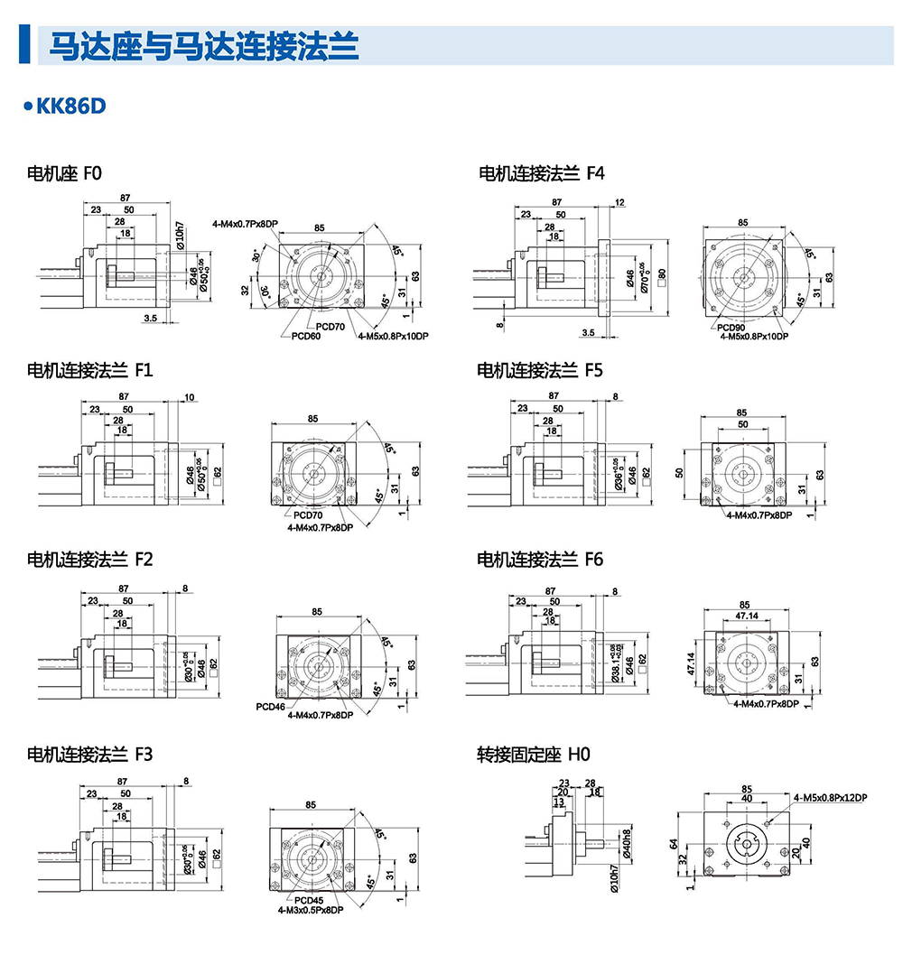 多樣化:輸出軸種類多樣化,有單出力軸型、雙出力軸型、中空軸型、中空法蘭型、中空軸錐形緊迫性、螺桿直線型、螺牙直線型。