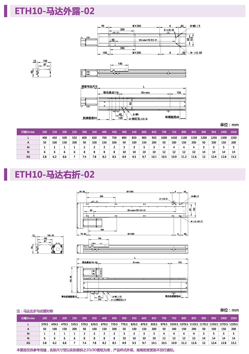 行程長到1050mm