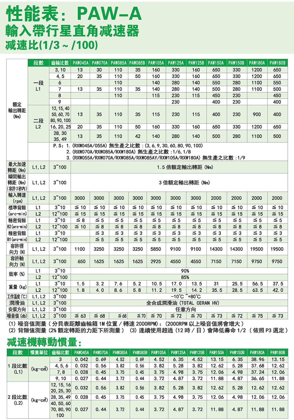 減速比:單段1:3~1:10雙段:1:12~12:100