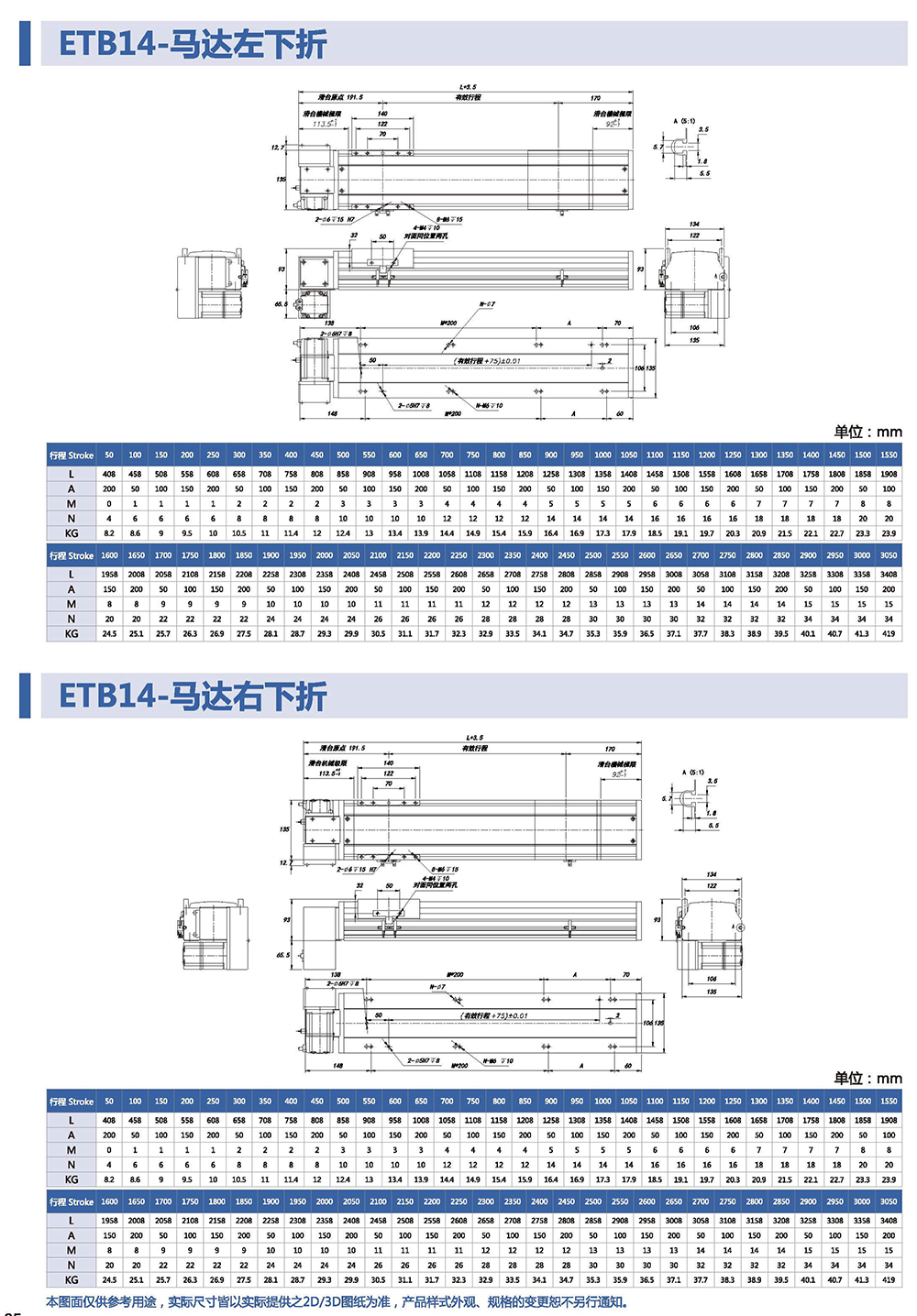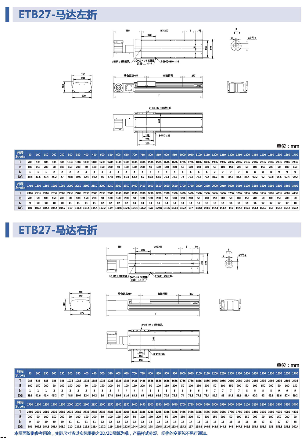 行程長到1050mm