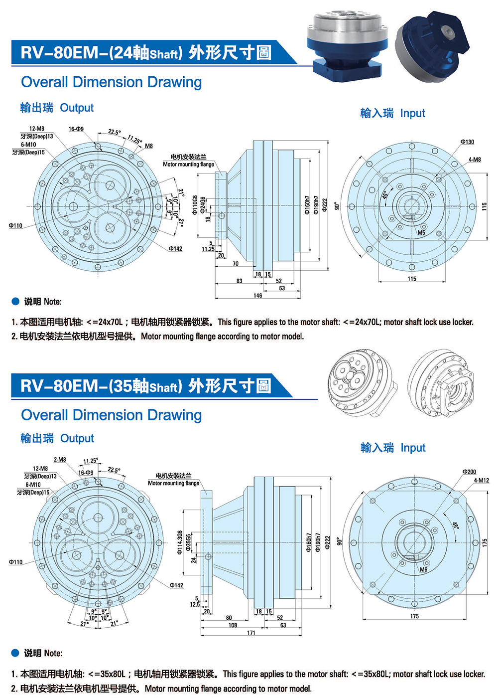 多樣化:輸出軸種類多樣化,有單出力軸型、雙出力軸型、中空軸型、中空法蘭型、中空軸錐形緊迫性、螺桿直線型、螺牙直線型。