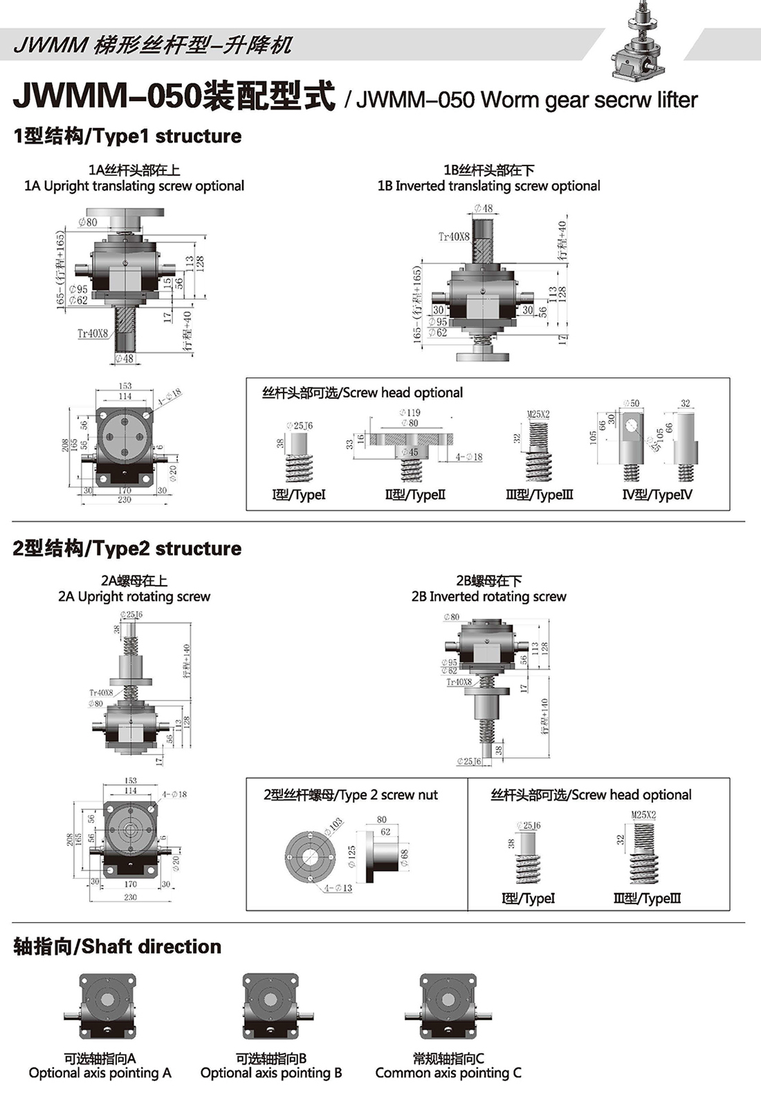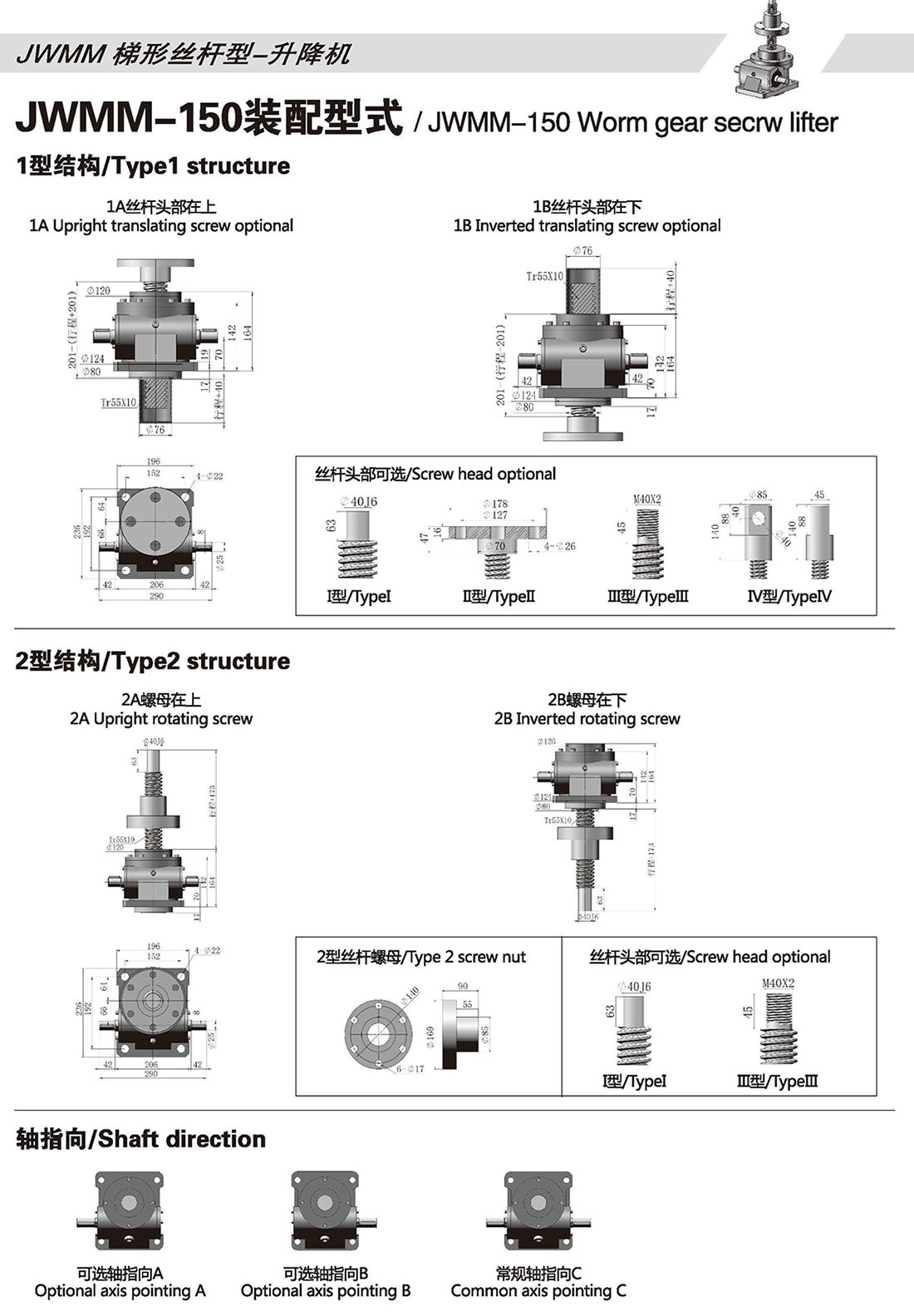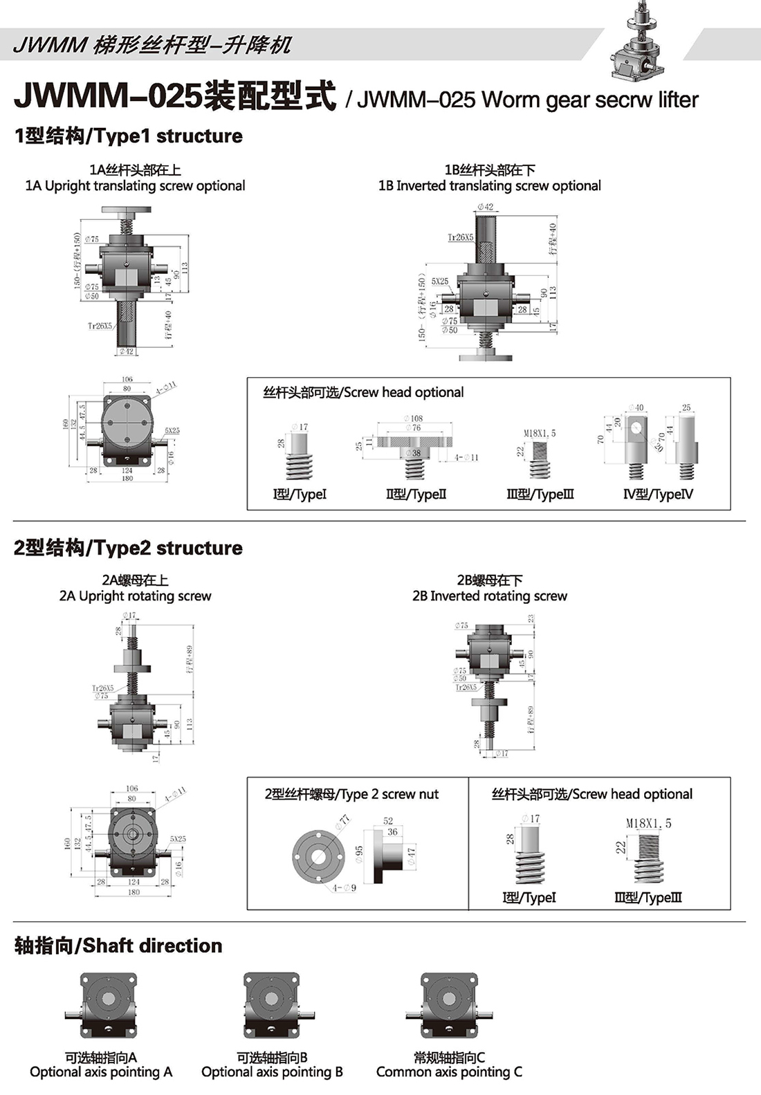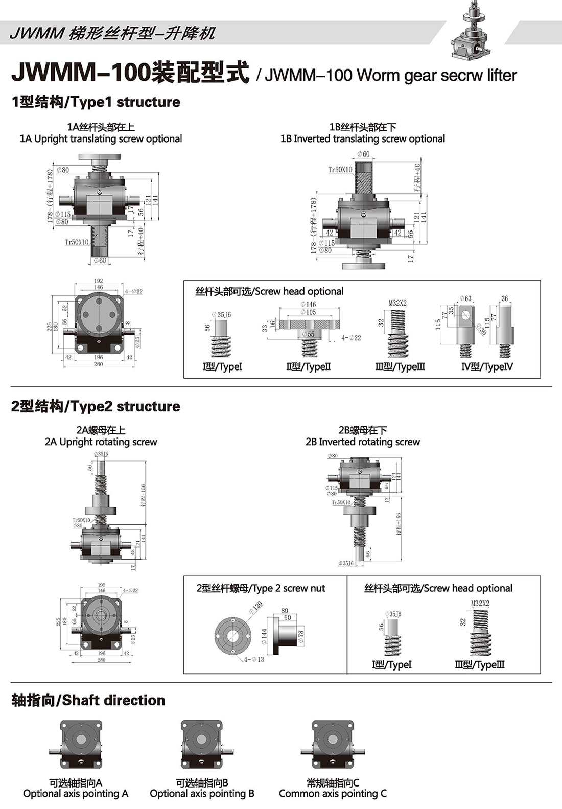 多樣化:輸出軸種類多樣化,有單出力軸型、雙出力軸型、中空軸型、中空法蘭型、中空軸錐形緊迫性、螺桿直線型、螺牙直線型。