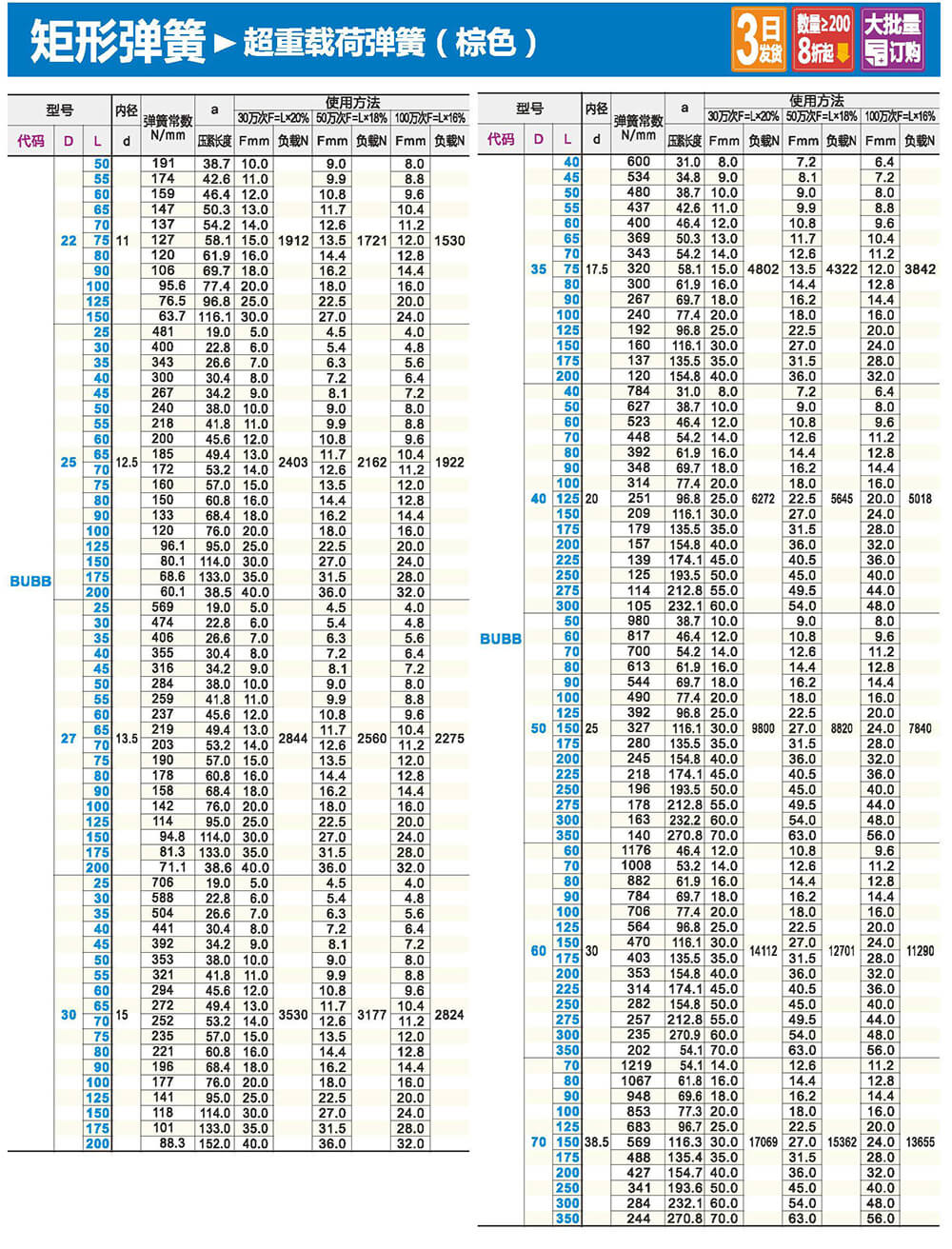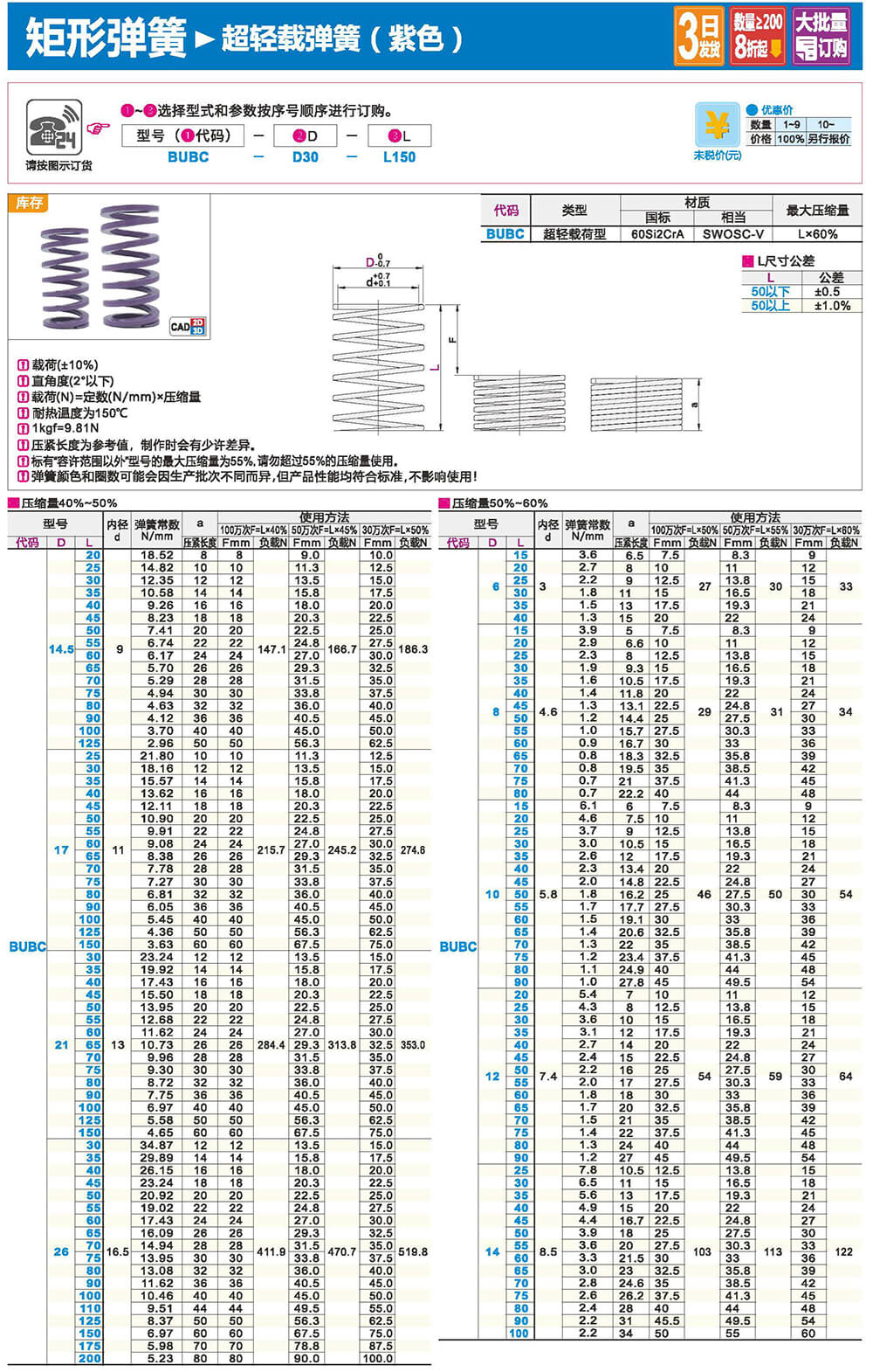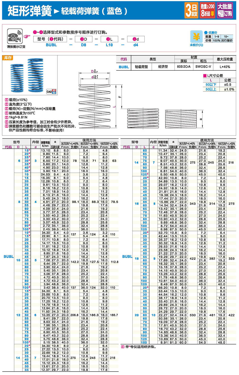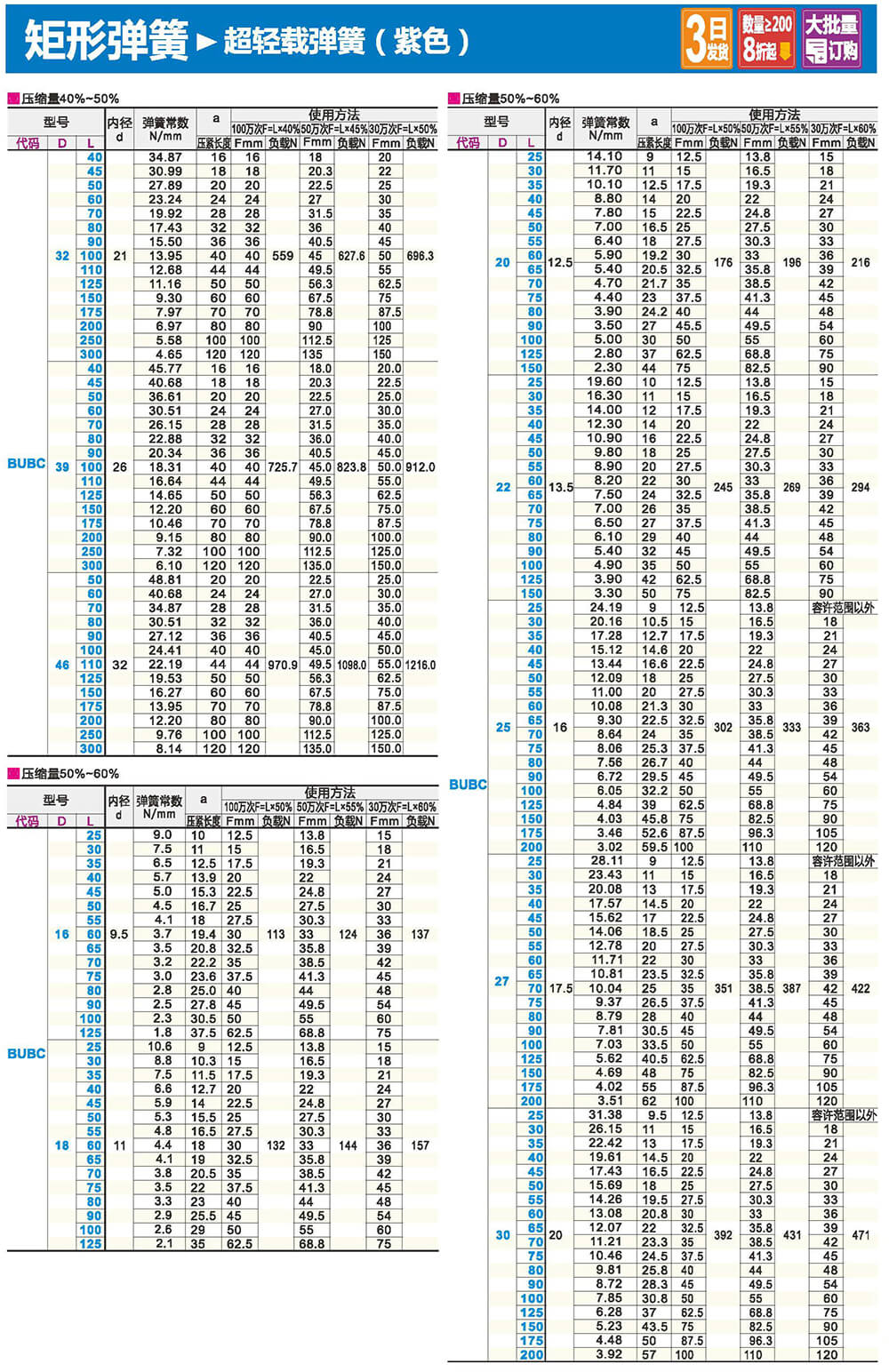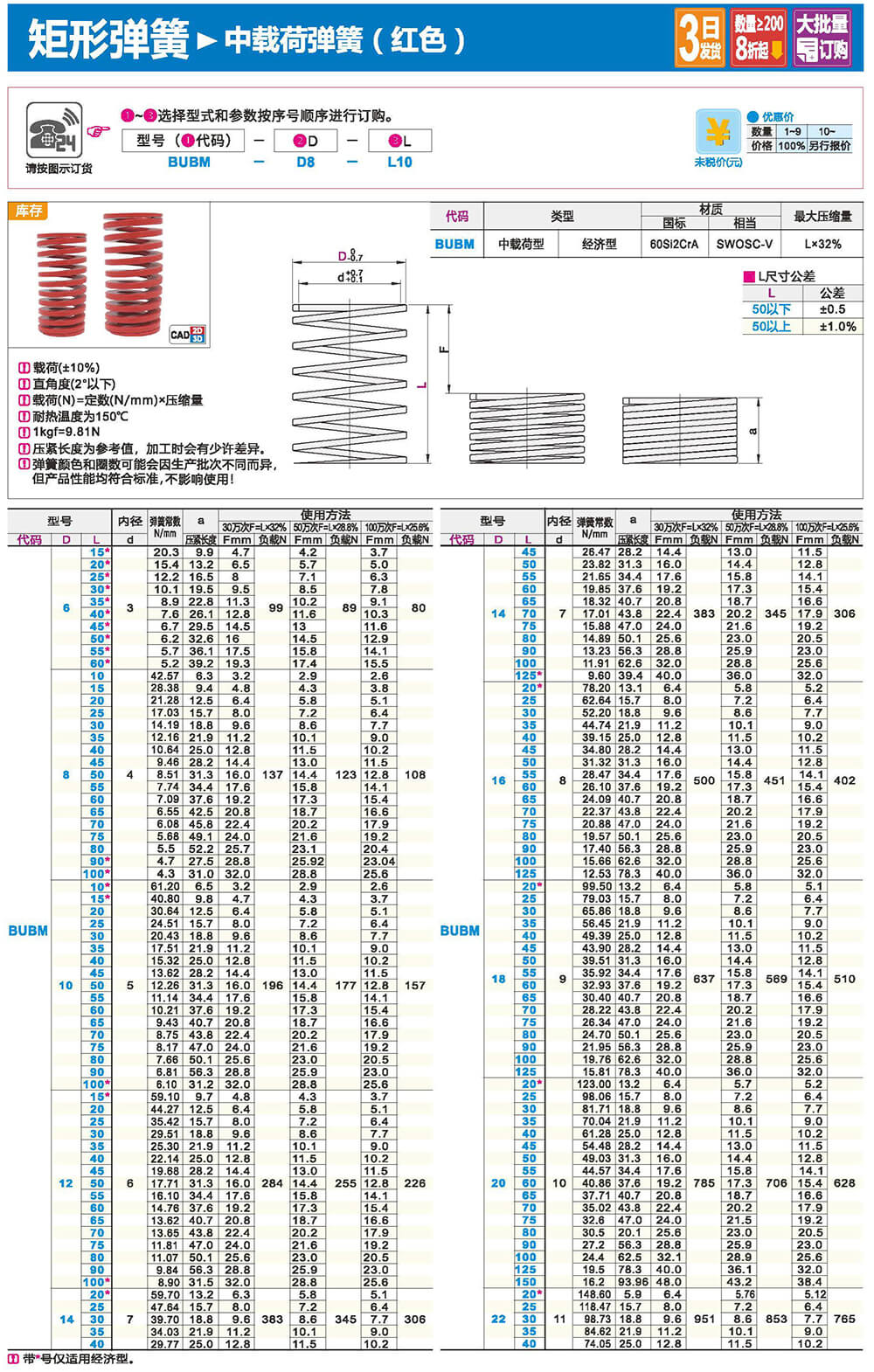 2.矩形截面壓縮彈簧:性質(zhì)和圓形截面圓柱螺旋彈簧相似,區(qū)別在于它所用的材料截面為矩形。在同樣空間條件下,矩形截面螺旋壓縮彈簧剛度更大,吸收的能量更多。
