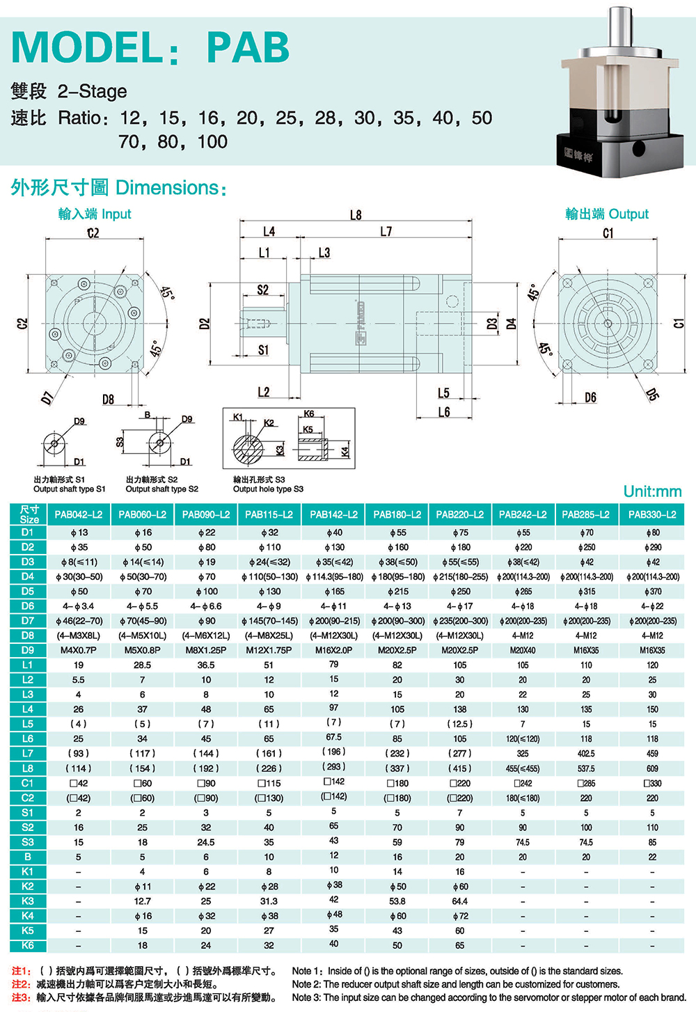 減速比:單段1:3~1:10雙段:1:12~12:100