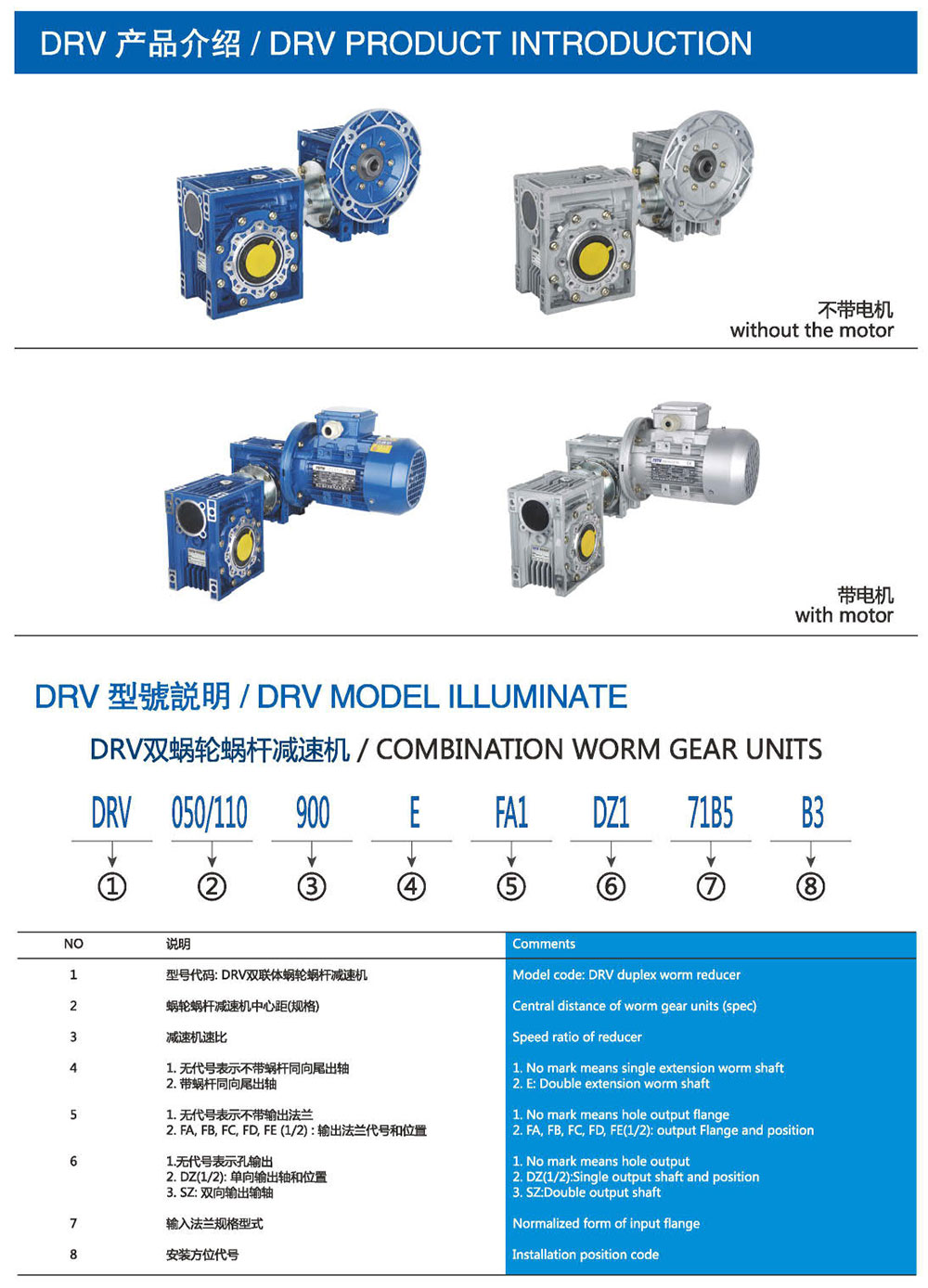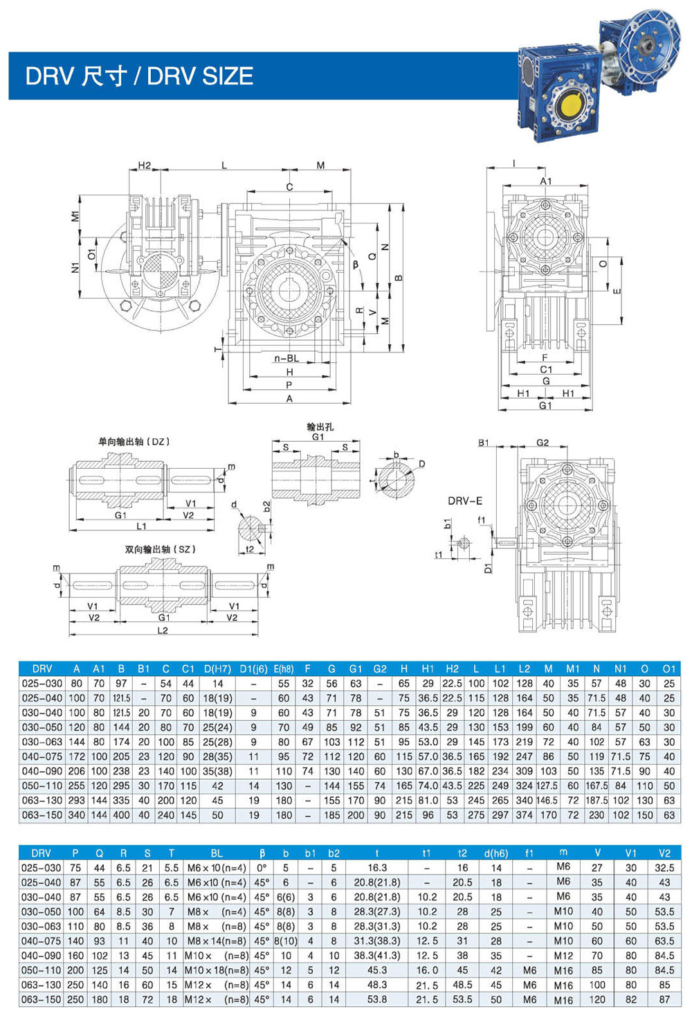 多樣化:輸出軸種類多樣化,有單出力軸型、雙出力軸型、中空軸型、中空法蘭型、中空軸錐形緊迫性、螺桿直線型、螺牙直線型。