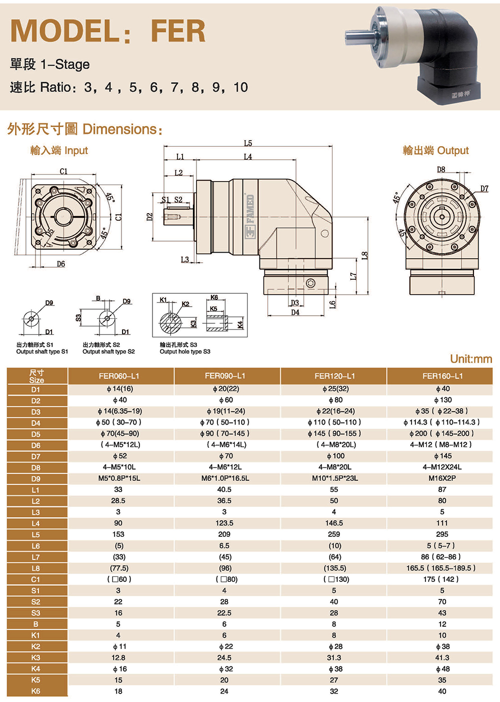 多樣化:輸出軸種類多樣化,有單出力軸型、雙出力軸型、中空軸型、中空法蘭型、中空軸錐形緊迫性、螺桿直線型、螺牙直線型。
