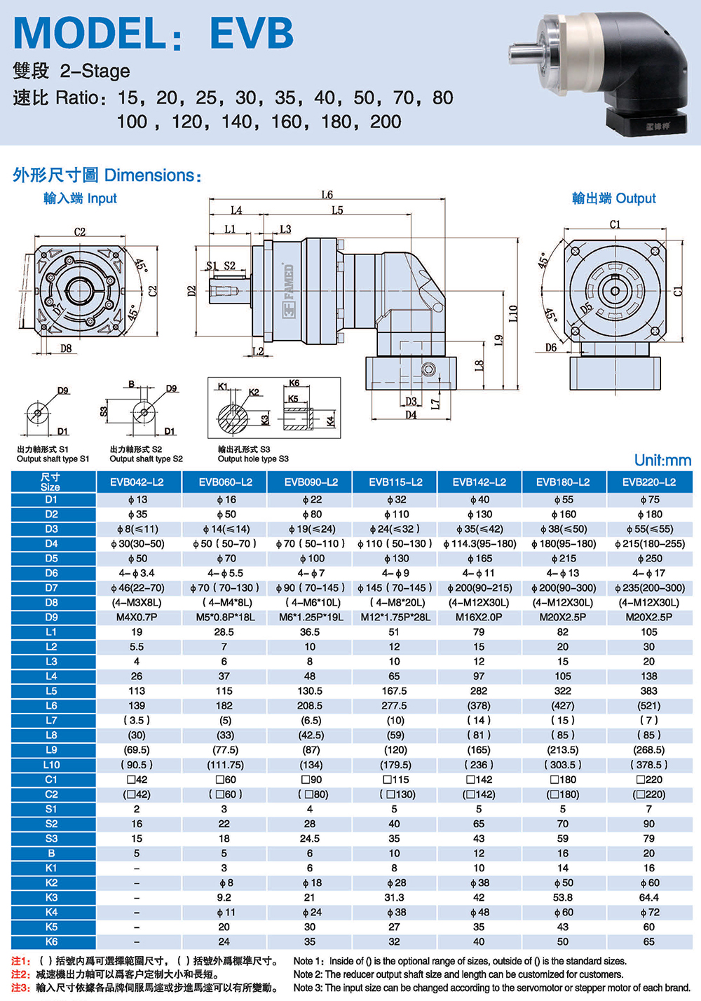 多樣化:輸出軸種類多樣化,有單出力軸型、雙出力軸型、中空軸型、中空法蘭型、中空軸錐形緊迫性、螺桿直線型、螺牙直線型。
