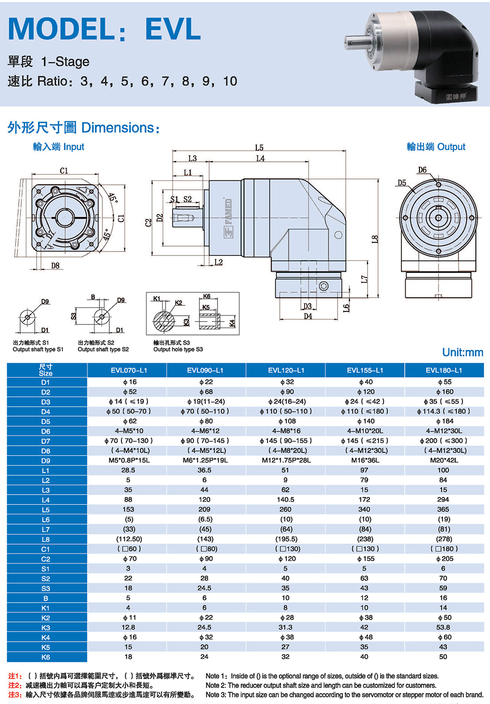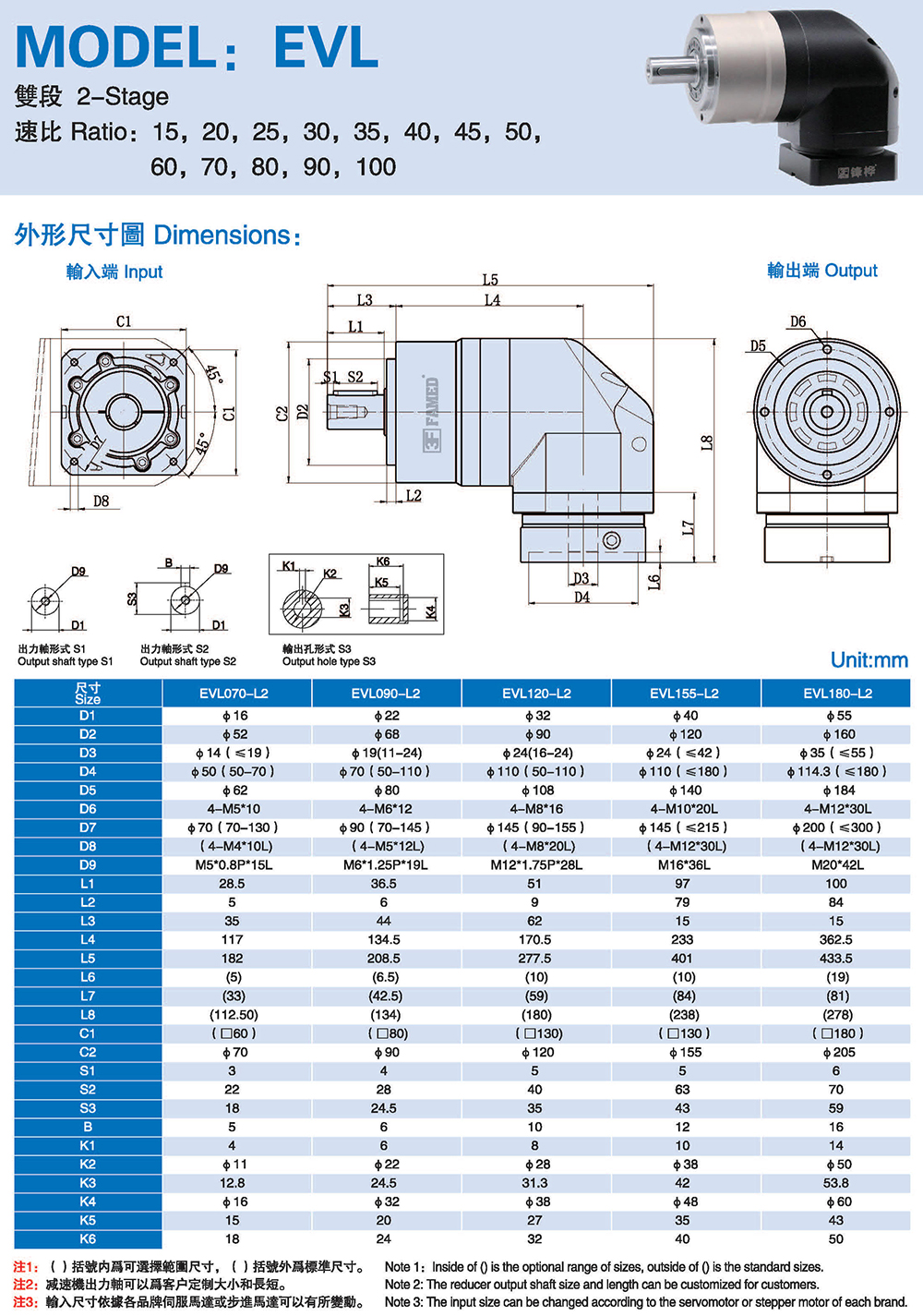 多樣化:輸出軸種類多樣化,有單出力軸型、雙出力軸型、中空軸型、中空法蘭型、中空軸錐形緊迫性、螺桿直線型、螺牙直線型。