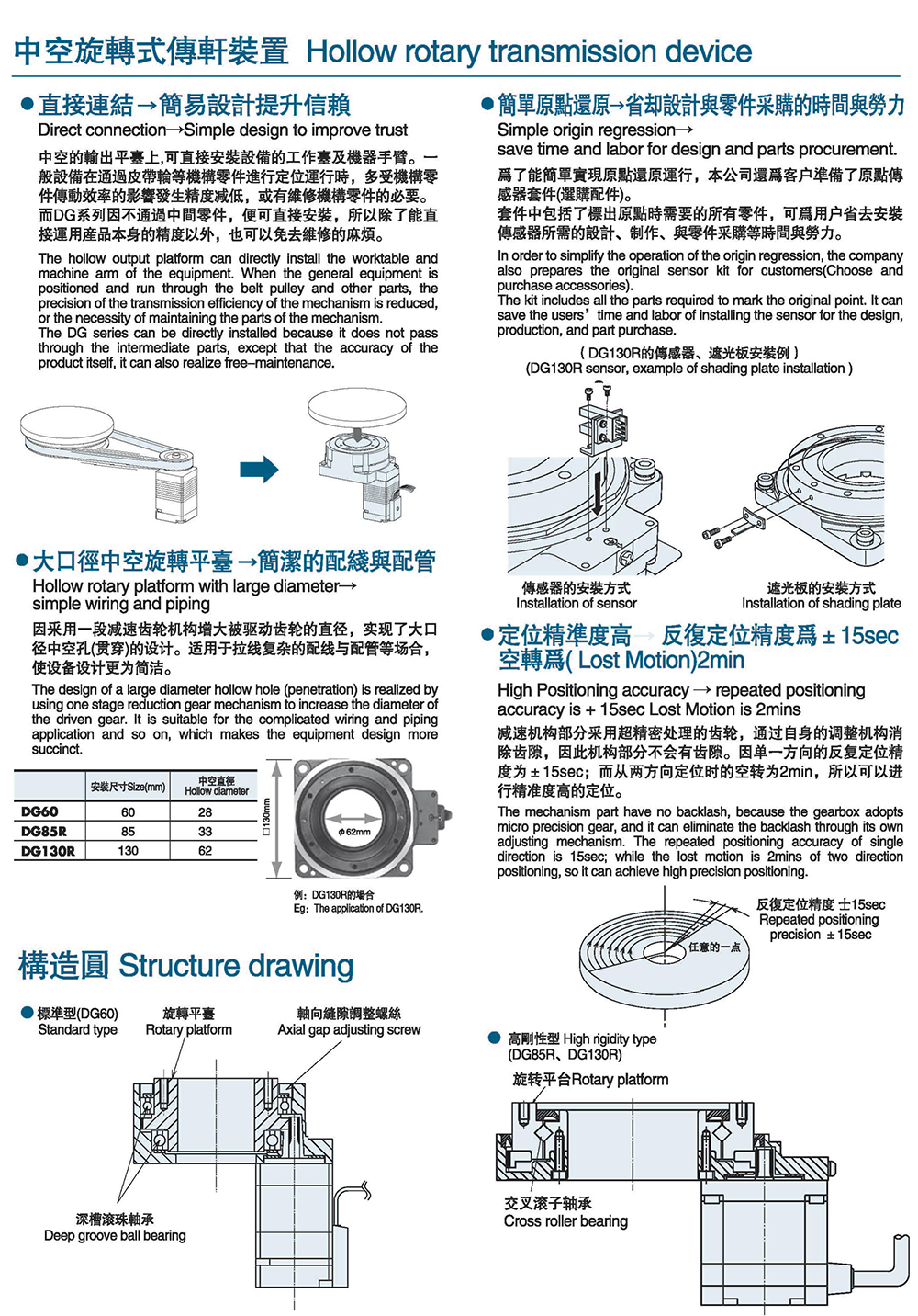反復(fù)定位精度為±15sec空轉(zhuǎn)(Lost motion)為2min,角度傳達(dá)誤差為 4min