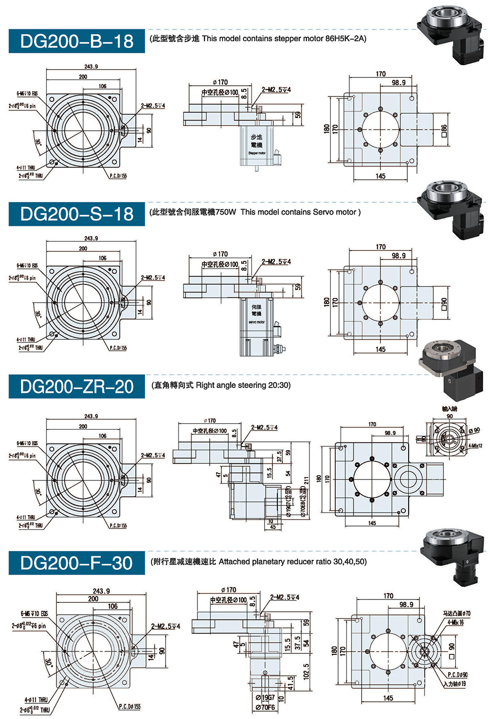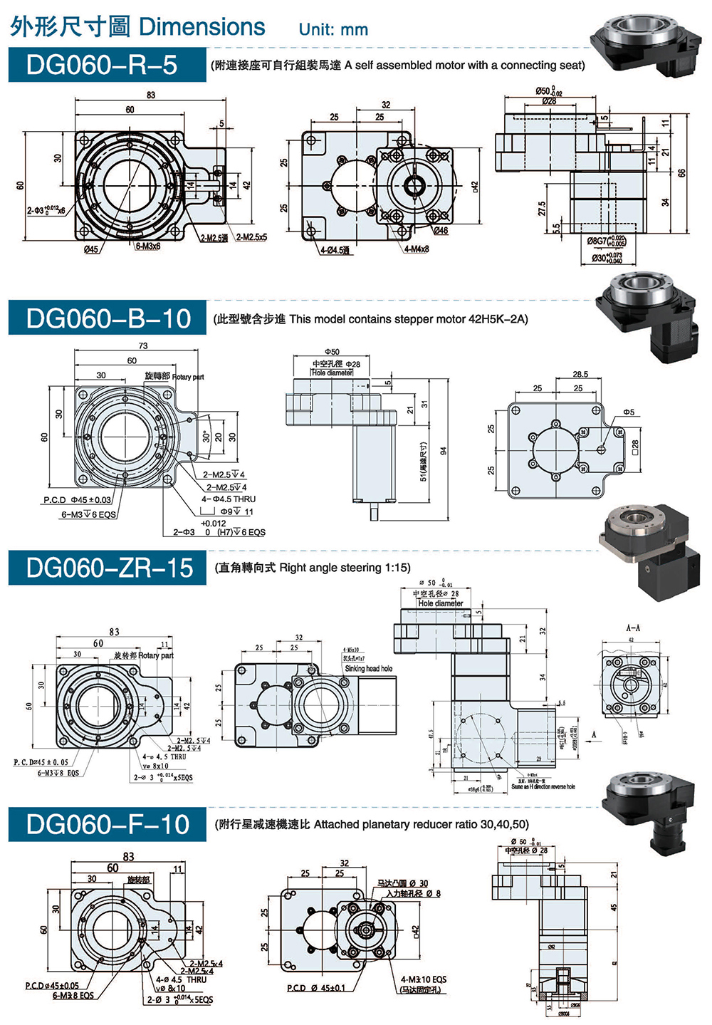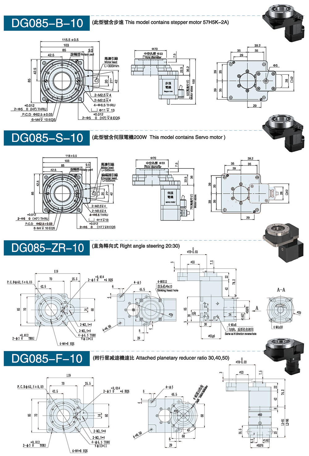 多樣化:輸出軸種類(lèi)多樣化,有單出力軸型、雙出力軸型、中空軸型、中空法蘭型、中空軸錐形緊迫性、螺桿直線(xiàn)型、螺牙直線(xiàn)型。