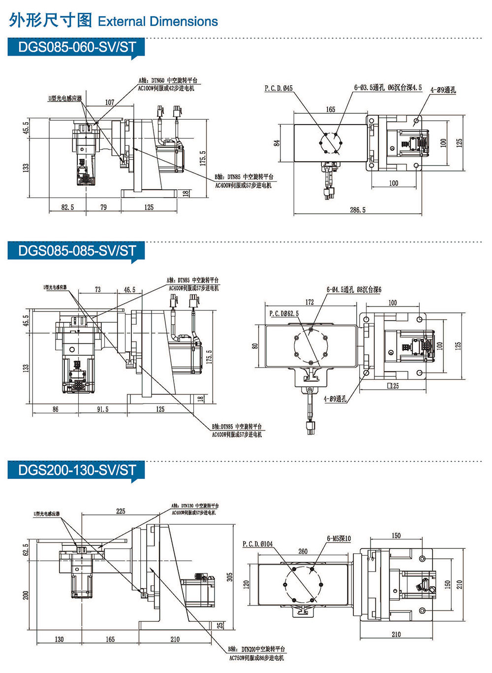 多樣化:輸出軸種類多樣化,有單出力軸型、雙出力軸型、中空軸型、中空法蘭型、中空軸錐形緊迫性、螺桿直線型、螺牙直線型。