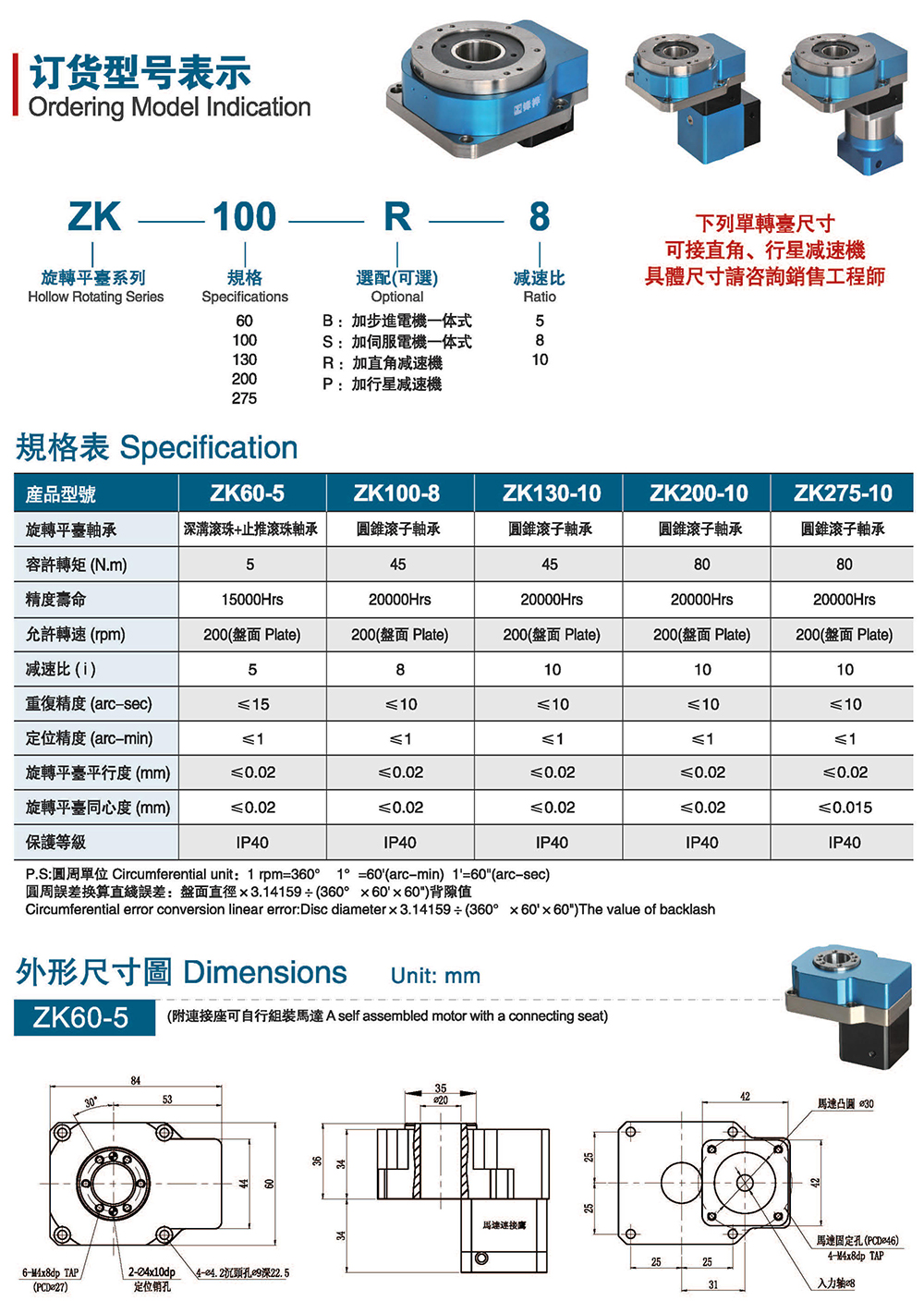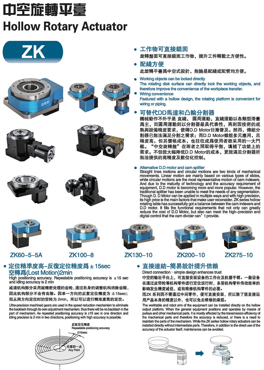 ●定位精準度高-反復定位精度為±15sec空轉為(Lost motion)2min