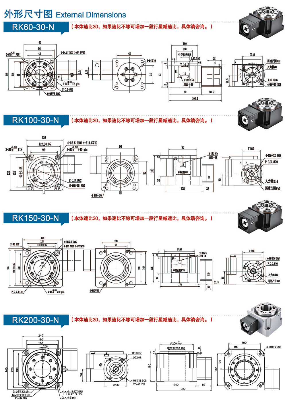 多樣化:輸出軸種類多樣化,有單出力軸型、雙出力軸型、中空軸型、中空法蘭型、中空軸錐形緊迫性、螺桿直線型、螺牙直線型。