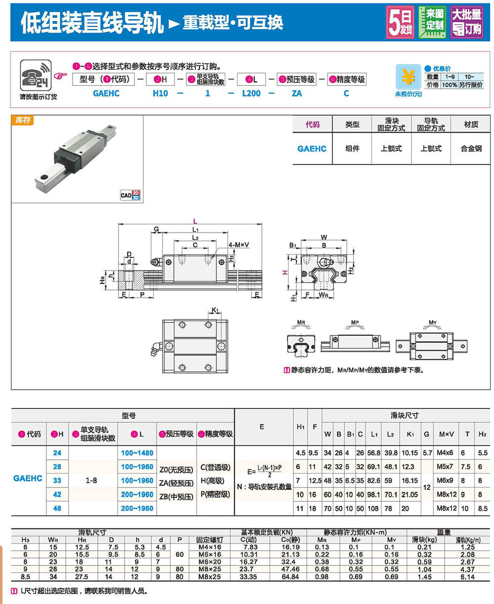 直線導(dǎo)軌由鋼珠在滑塊與滑軌之間作無限滾動循環(huán)負(fù)載平臺能沿著滑軌輕易地以高精度做線性運(yùn)動。與傳統(tǒng)的滑動導(dǎo)引相比較滾動引導(dǎo)的摩擦系數(shù)可降低至1/50,由于啟動的摩擦力大大減少,相對的較少無效運(yùn)動發(fā)生故而能輕易達(dá)到μum級進(jìn)給及定位。在加上滑塊與滑軌的束制單元設(shè)計(jì),使得線性導(dǎo)軌可同時承受上下左右等各個方向的負(fù)荷上述陳列特點(diǎn)并非傳統(tǒng)滑動導(dǎo)引所能比擬因此機(jī)臺若能配合滾珠螺桿,使用線性導(dǎo)軌作導(dǎo)引必能大幅提高設(shè)備精度與機(jī)械效能。