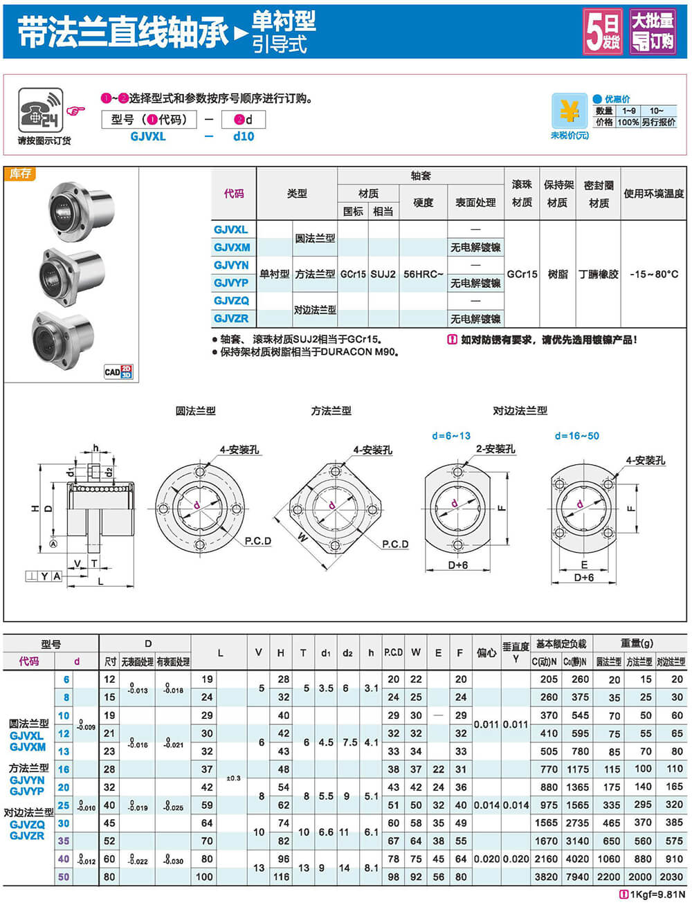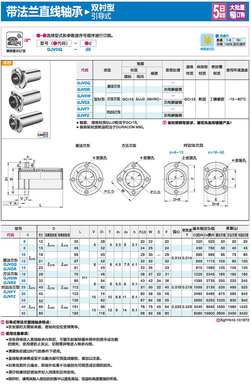 特點:低噪音、低摩擦、高精度、高壽命。由于滾珠和直線軸間為點接觸,因此摩擦力小,運動精度高。